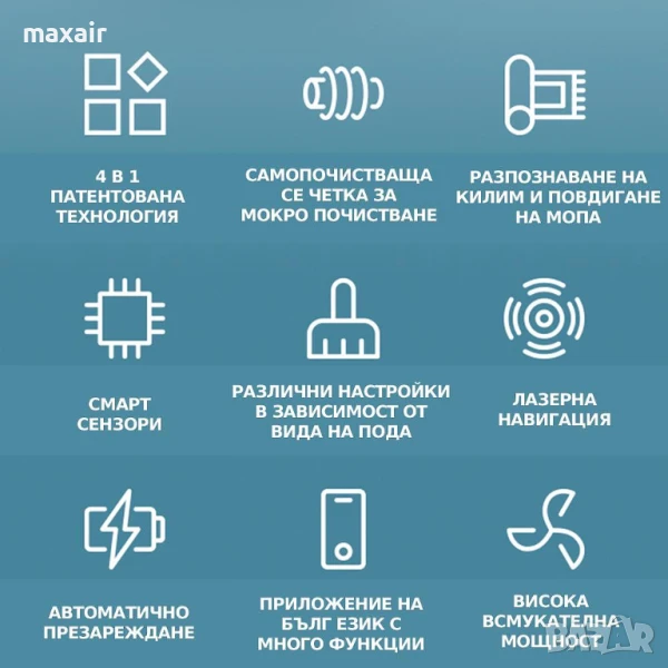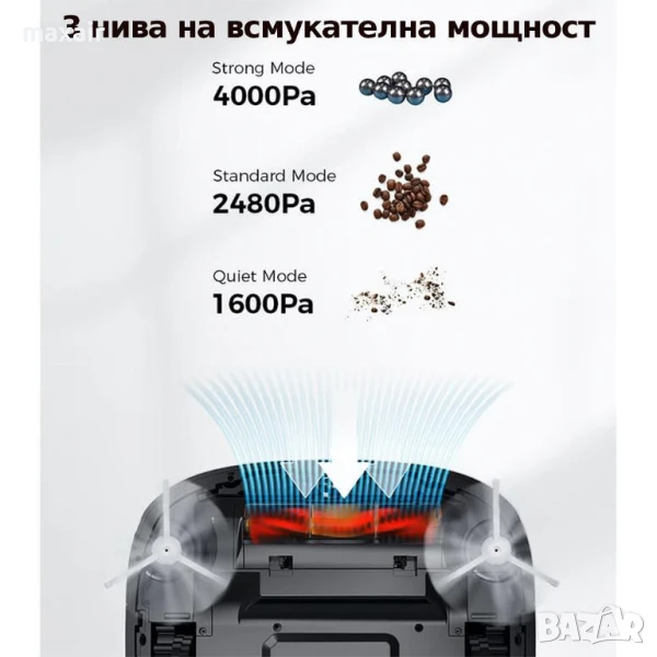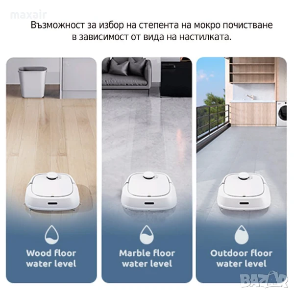 – възможност за избор на зони за почистване и забранени зони, задаване на всмукателна мощност, настройка на интензитета на мокро почистване и други функции