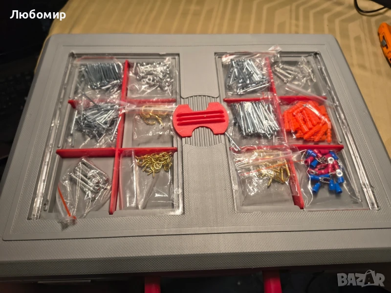 В капака на кутията е включен малък асортимент от желязо40,5x31x9С най-разпространените ръчни инструменти ще разполагате с всичко необходимо, за да се справите с всяка задача. И най-хубавото е, че капакът съдържа селекция от крепежни елементи! Независимо дали трябва да окачите нещо, да го поправите или да го сглобите, този куфар с инструменти има всичко необходимо
