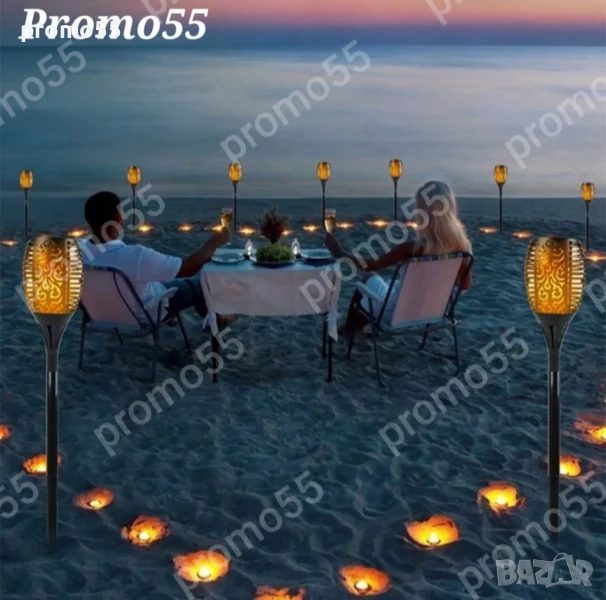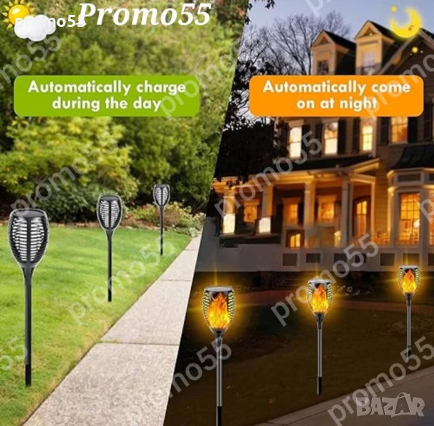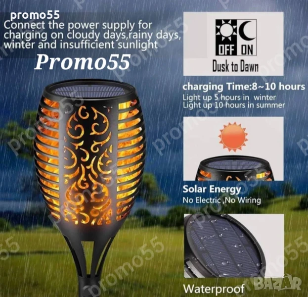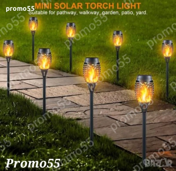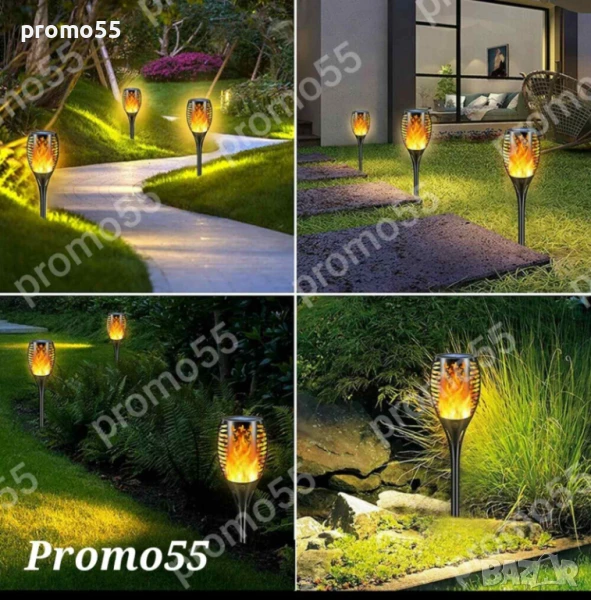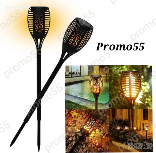 Соларна лампа 76см. за декорация на градина и двор с огнен ефект, танцуващ пламък