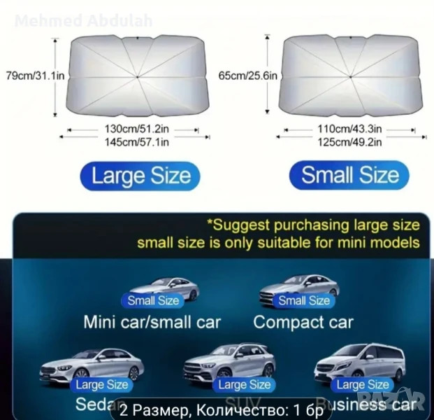Топлозащитен чадър За Предно стъкло на автомобила , снимка 1 - Аксесоари и консумативи - 50754454 Топлозащитен чадър За Предно стъкло на автомобила , снимка 2 - Аксесоари и консумативи - 50754454 Топлозащитен чадър За Предно стъкло на автомобила , снимка 3 - Аксесоари и консумативи - 50754454 Топлозащитен чадър За Предно стъкло на автомобила , снимка 4 - Аксесоари и консумативи - 50754454 Топлозащитен чадър За Предно стъкло на автомобила , снимка 5 - Аксесоари и консумативи - 50754454 1/5