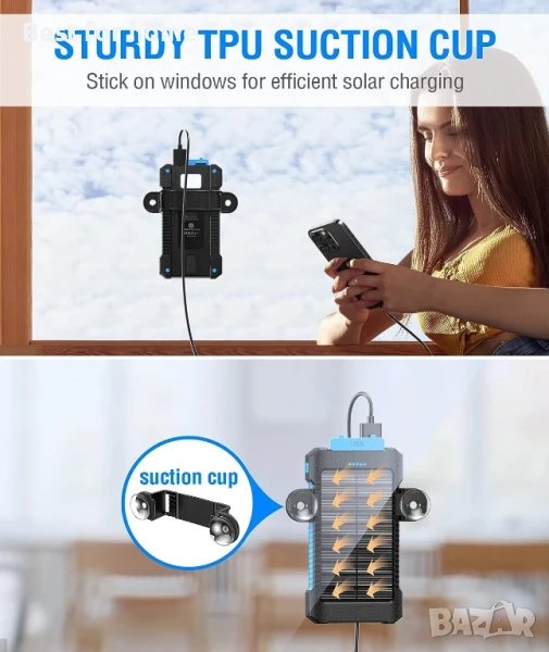 GNC M30000 Соларна външна батерия, слънчево зарядно устройство с вендуза, три режима на работа