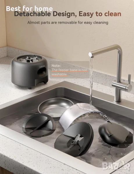 Контейнерът за съхранение на храна и капакът на нашата интелигентна хранилка за домашни любимци са оборудвани с предпазни заключващи механизми, които предотвратяват достъпа или преобръщането на храната от пакостливи домашни любимци. Освен това, херметическата среда предпазва контейнера за храна от въздух, влага и вредители. Купата от неръждаема стомана, подходяща за хранителни цели, осигурява хигиенично хранене.