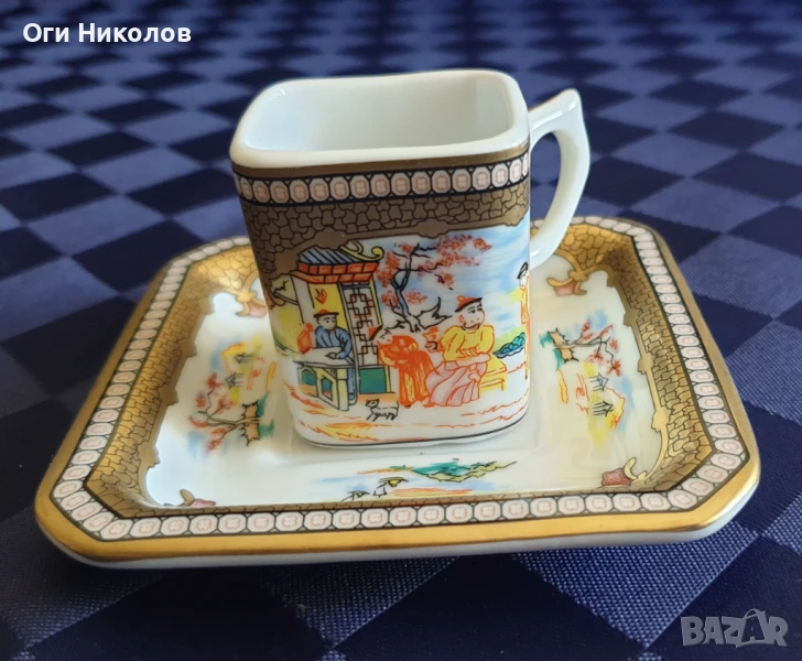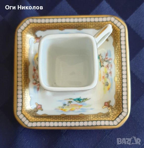 Малък порцеланов японски колекционерски сет.Фин порцелан,богата позлата.Ръчнорисуван Вместимост чашка до ръб - 50 мл.