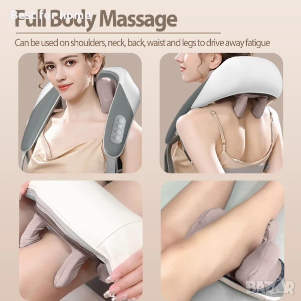 【𝙈𝙐𝙇𝙏𝙄-𝙁𝙐𝙉𝘾𝙏𝙄𝙊𝙉𝘼𝙇𝙄𝙏𝙔 𝙁𝙍𝙀𝙀𝙎 𝙔𝙊𝙐𝙍 𝙃𝘼𝙉𝘿𝙎】С многофункционалния дизайн с ленти, нашият масажор за врата има различни начини за носене. Можете да го носите както желаете, например с ръка или с свободно носене. Масажорът за врата и раменете е малък и преносим и лесно се побира във всяка чанта за пътуване със стандартен размер, чанта за фитнес или ръчен багаж. Идеален за употреба у дома, в офиса или в движение!