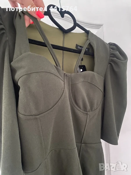 Елегантна рокля с ефектни ракави и деколте. Цвят: тъмно зелен. Размер М