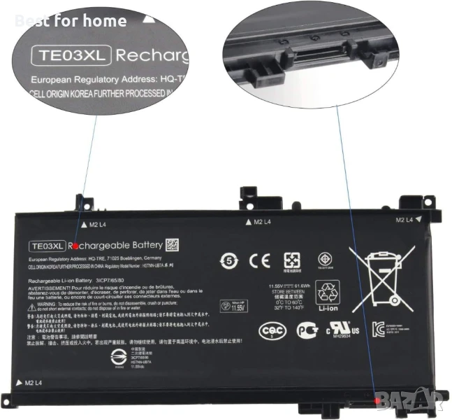 Батерия за лаптоп HP Pavilion 15-BC000, OMEN 15-AX000, 15T-AX000, 15T-AX200, HSTNN-UB7A, TPN-Q173, 849910-850, 11.55V, 61.6Wh