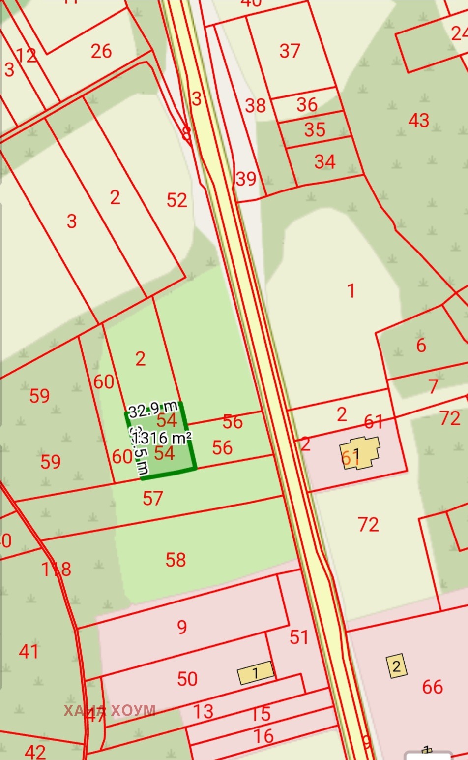 Имот 2: Земеделска земя; нива; 4-та категория; 1315 кв.м; без лице на главен път;