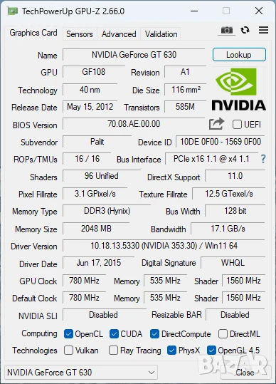 Model: NVidia GeForce Palit GT630
