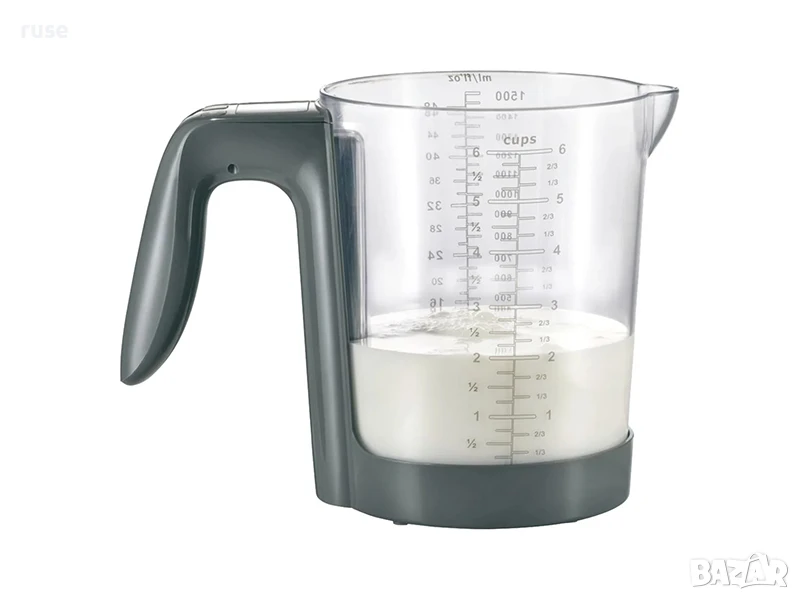- Функция за отмерване на вода, олио и мляко (в ml), както и на брашно (чаши)