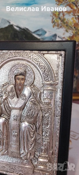 Гръцка сребърна икона на св.Спиридон. Проба 950. Перфектно състояние. → Обява 50755937