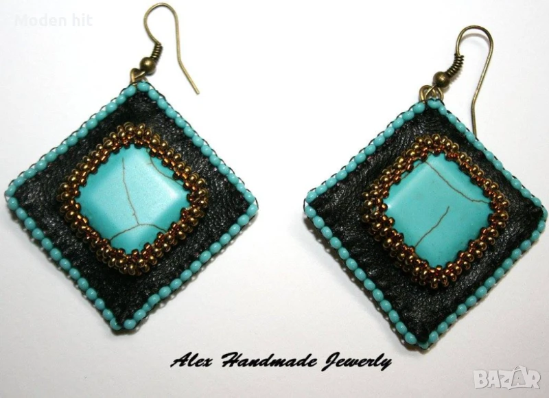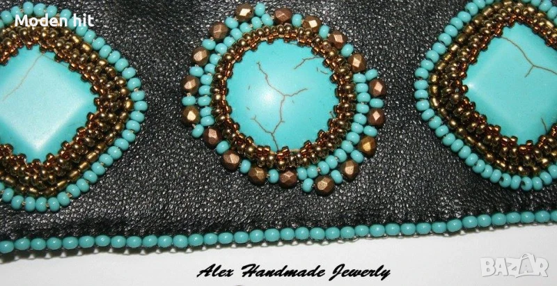 Материали: Preciosa sead bead, Toho sead beads, Preciosa fire polished beads, кабошони тюркоаз, естествена кожа, метални елементи.