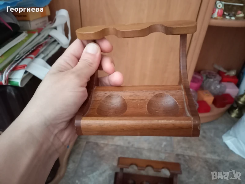 Две дървени поставки за лули. Цената на голямата е 30 лв. на по-малката е 15 лв.