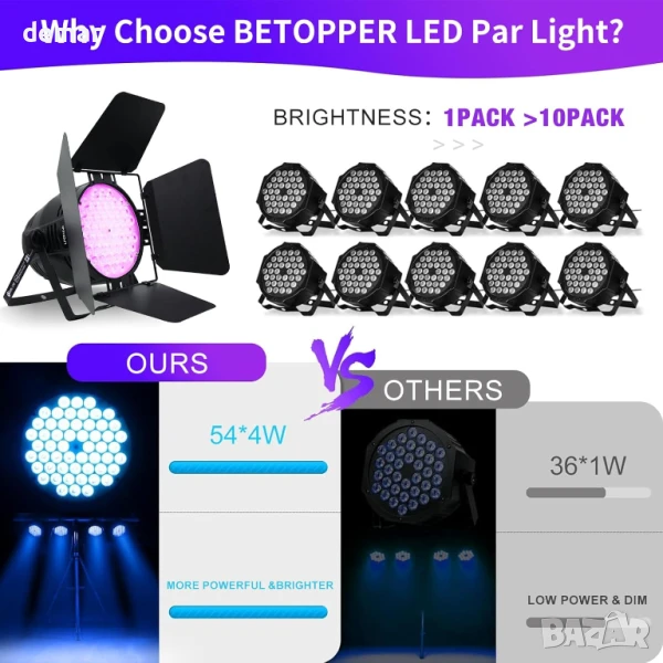 Сценично осветление с ламели Betopper 200W, CRI/RA>90 RGBW 4в1,5000 Lm