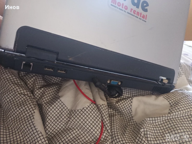 няма хард диск батерията не държи много трябва да я поставим на захранване нямам кабел за захранване да cd-то му работи всички портове му работят камерата я няма вижда се от снимките къде са му забележките за работен лаптоп е перфектен може.