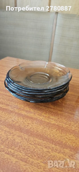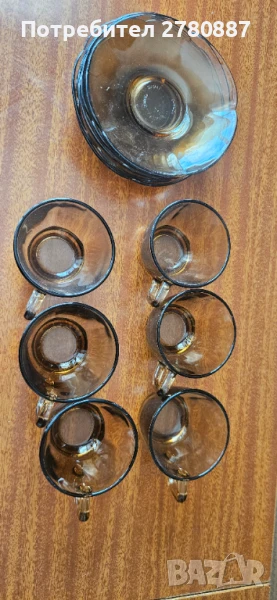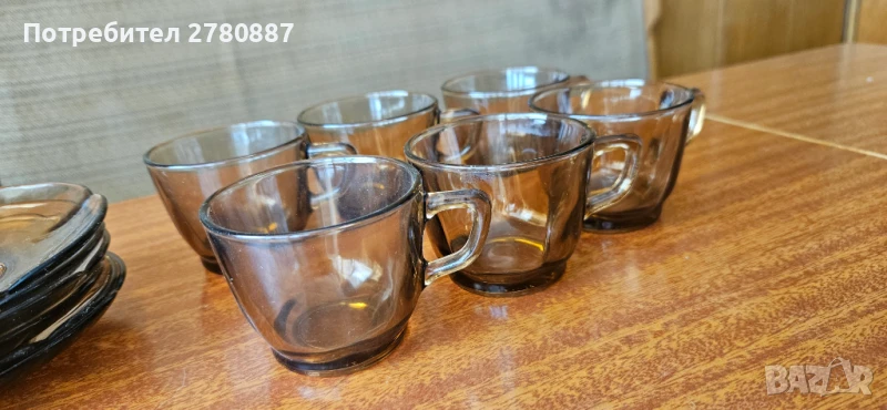 Комплект ретро чаши и чинийки за кафе Duralex France от опушено