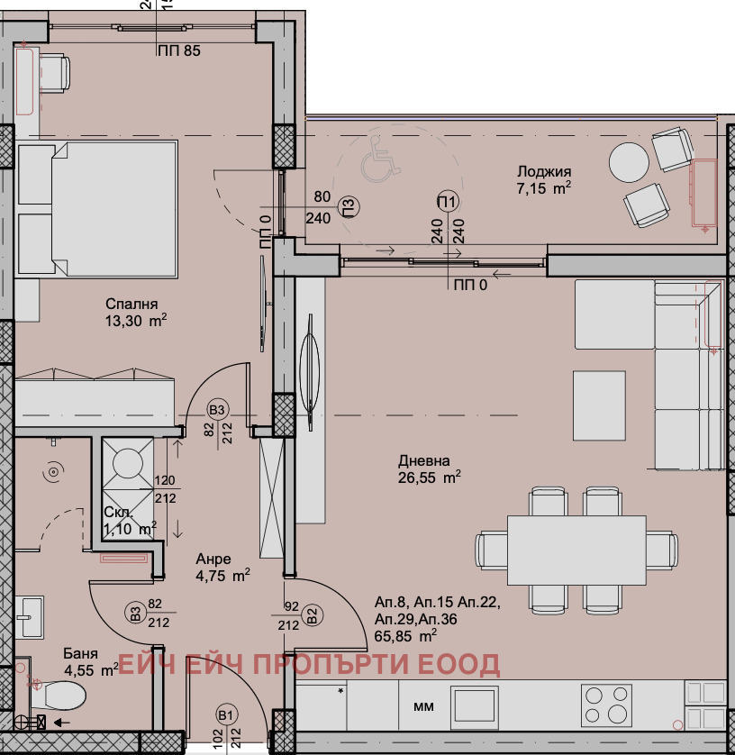 🛋 Просторна дневна с кухненски бокс идеално за релаксация и социализиране, с големи прозорци, които позволяват на слънцето да влиза през целия ден