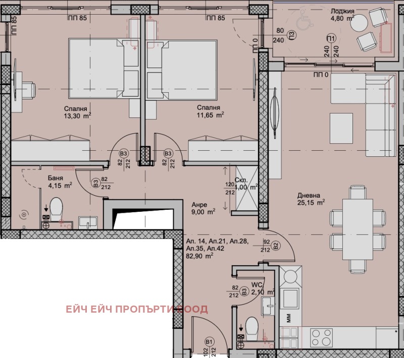 🛋 Просторна дневна с кухненски бокс съвършено място за релаксация и социални моменти, с големи прозорци, които ви позволяват да се наслаждавате на слънцето през целия ден
