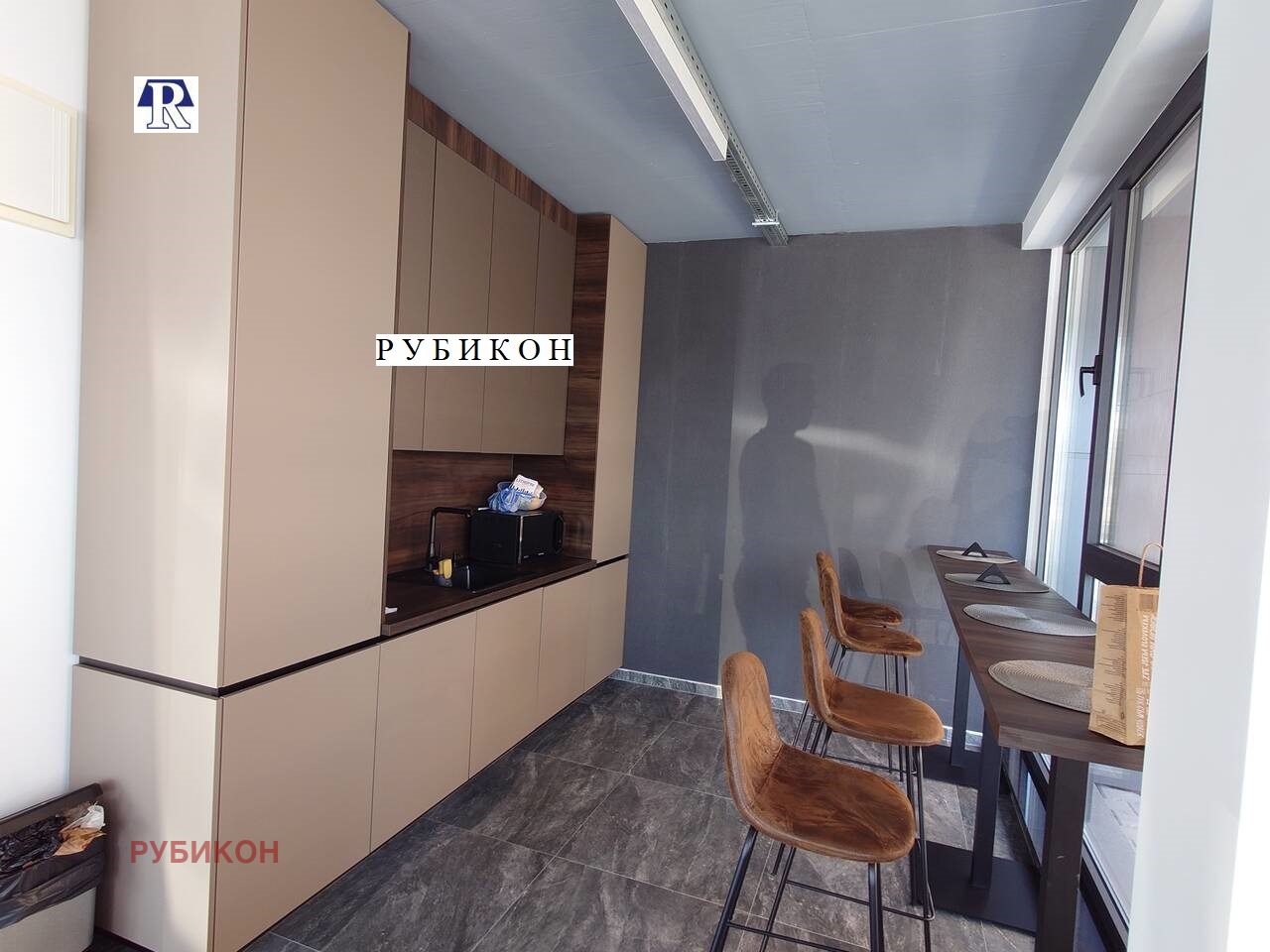 We offer you an industrial warehouse hall with a showroom and offices, equipped bathrooms and toilets, and built air conditioning in the office area, located in an excellent location! Showroom on three floors with large and spacious offices, 4 (independent) bases with 8 doors - door height 4 meters. Metal structure with thermal panel - 100 mm, floor - ground concrete.- A solar park with a capacity of 130 kW is built on the roof structure of the hall.- 12 open parking spaces- Possibility to unite with an adjacent plot of 3,000 m2, which can be designated and used for a truck parking and employee parking with access from the back road.- The pavement around the entire property is made of concrete paving stones.- Fire alarm system.- The administrative part is fully air-conditioned.Distribution of the warehouse building:- Base 01 = 343.49 m2 - for warehouse activity.- Base 02 = 312.80 m2 - for warehouse activity.- Base 03 = 349.60 m2 - for warehouse activity.- Base 04 = 368.73 m2 - for warehouse activity.- Total area for warehouse activities = 1374.62 m2Total built-up area - 2042.23 m2!Zoning - 2824 m2! Suitable for warehouse, commercial activity, workshop, factory, outlet, logistics center, industrial production and other activities. The price is without VAT! Other options: truck access, security, parking spaces for clients. Rubikon company has over 500 offers for rent of warehouses and industrial premises with various areas and locations in Plovdiv and Plovdiv region! RUBIKON office Plovdiv, Blvd. Iztochen 47, 2nd floor, office 7, tel.: 0889217124