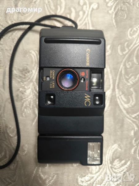 продавам лентов фотоапарат, работи, Canon MC , фотоапарата работи с две батерии ААА по 1, 5 v, светкавицата и тя работи с две батерии ААА по 1, 5 v , имам още много други фотоапарати, камери, обективи, чанти, светкавици, батерии, зарядни устройства, касети, филтри, ремъци, ленти, при закупуване на повече неща отстъпка