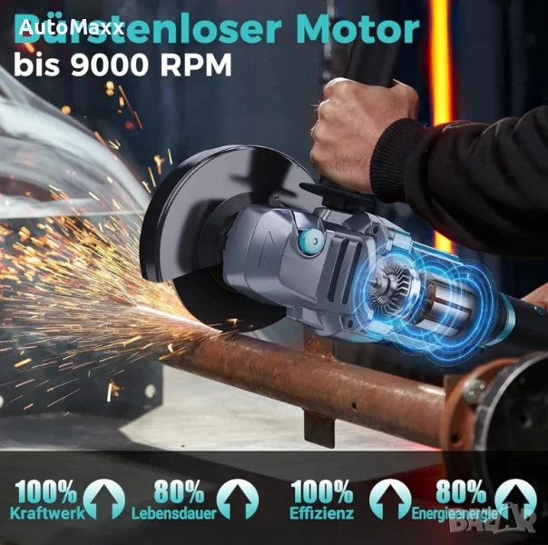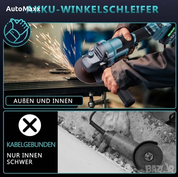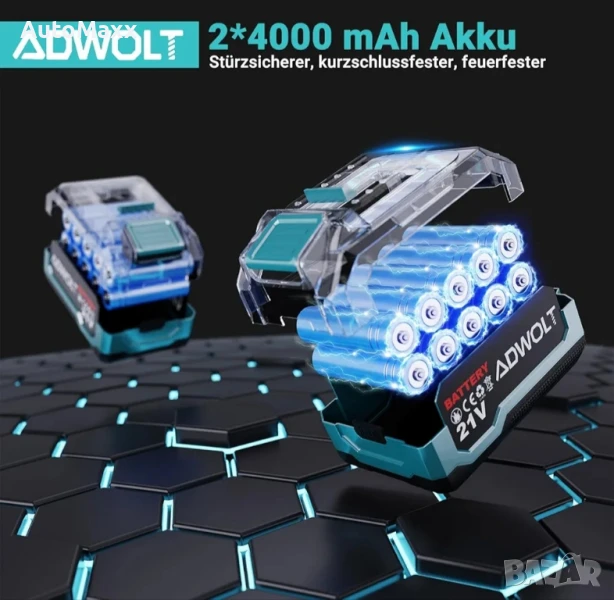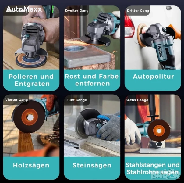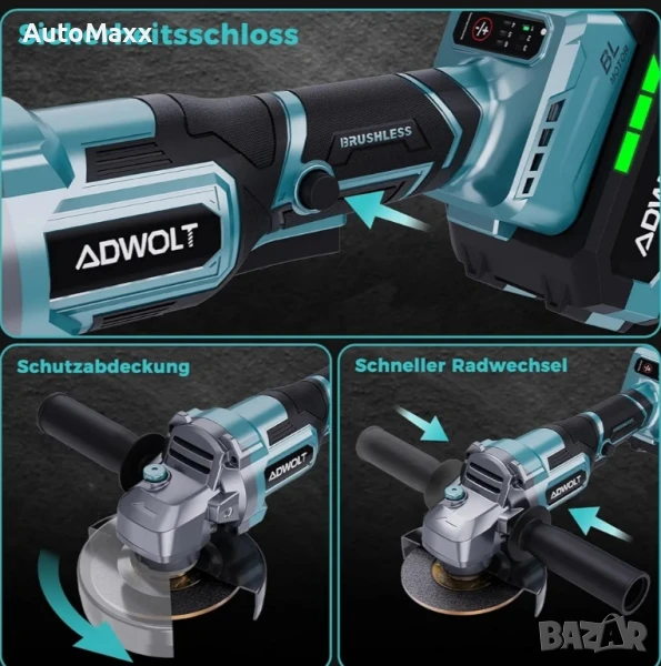 ADWOLT Безжична ъглошлайф машина 125 мм 21 V, ъглошлайф, 6-степенна регулируемост с 2 x 4.0 Ah батерии, 9000 RPM безчетков мотор.Закупен от Amazon Германия