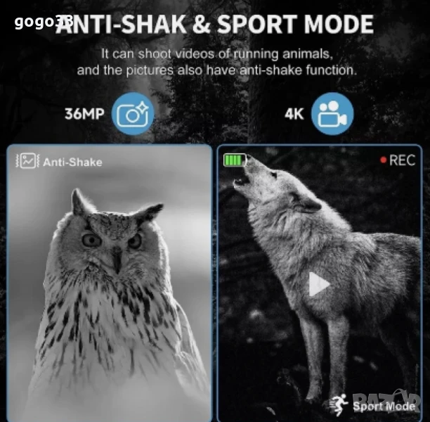 Бинокъл 4k нощно виждане, 36MPЦена: 127 леваТип продукт : Бинокъл;Бинокълът с 4K нощно виждане е мощно устройство за наблюдение при всякакви светлинни условия. Оборудван с висока резолюция от 36MP за ясни снимки и видеа, той разполага и с възможност за запис в 4K формат. Презареждаема литиева батерия за дълготрайна употреба. Този бинокъл е идеален за лов, къмпинг, нощно наблюдение и други outdoor активности.Гаранция 12 месеца.