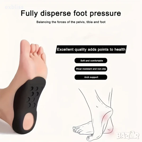 Ортопедични стелки за плоско стъпало и плантарен фасциит – Корекция на свода, облекчение на болката и правилна стойка за Мъже и Жени