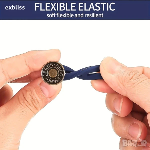 Удължителят е с гъвкав дизайн, който е удобен и мек на допир. Примката на копчето е изработена от гъвкава пластмаса, издържаща на напрежение до 10 паунда (около 4.5 кг) без деформация. Това е продукт, създаден да издържи. Употребата е невероятно лесна и не изисква шиене: просто поставете удължителя за илици върху оригиналния бутон на панталона и след това свържете другия край към слота за бутони. Проблемът със стегнатия колан се решава мигновено, осигурявайки ви повече пространство за комфорт в кръста.