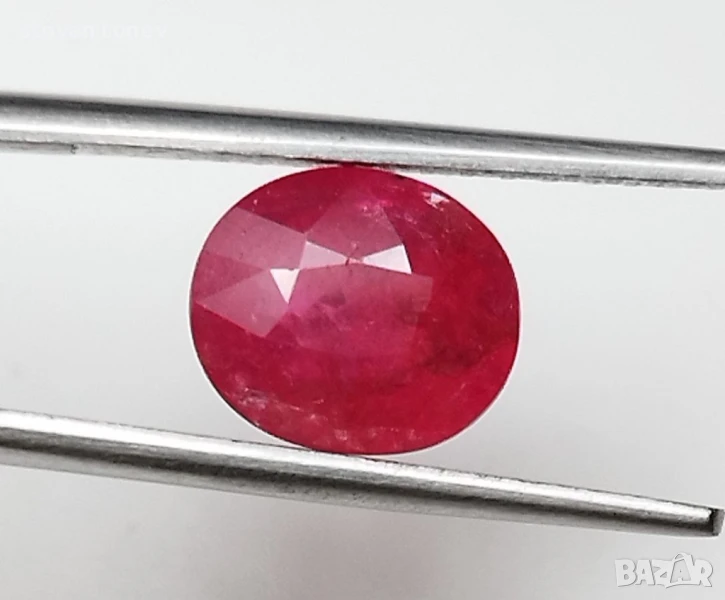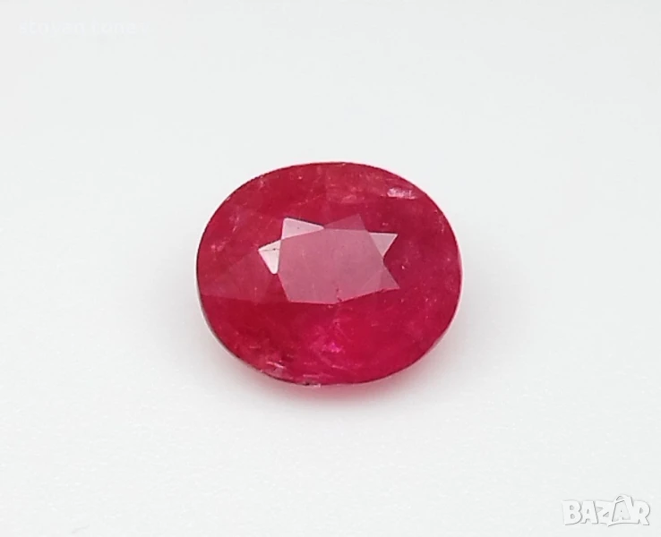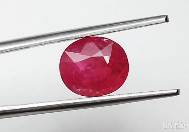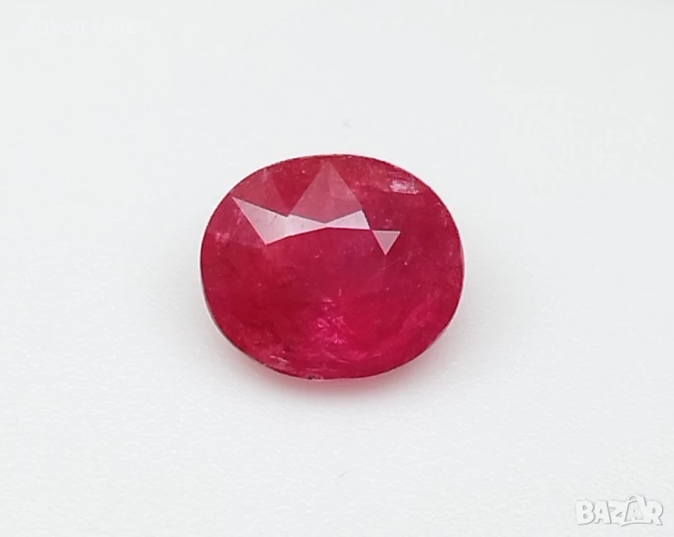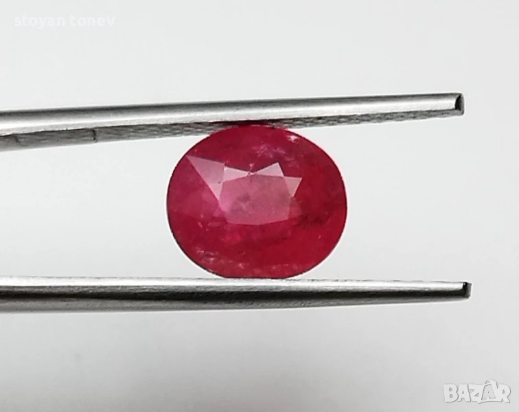 Симпатичен и непретенциозен рубин с красив цвят и добра овална форма, подходяща за монтаж в различни бижута. Рядък ненагряван скъпоценен камък.