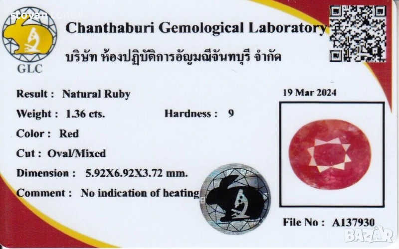 Ненагряван. Сертифициран от GLC Gem Lab с възможност за онлайн проследяване.