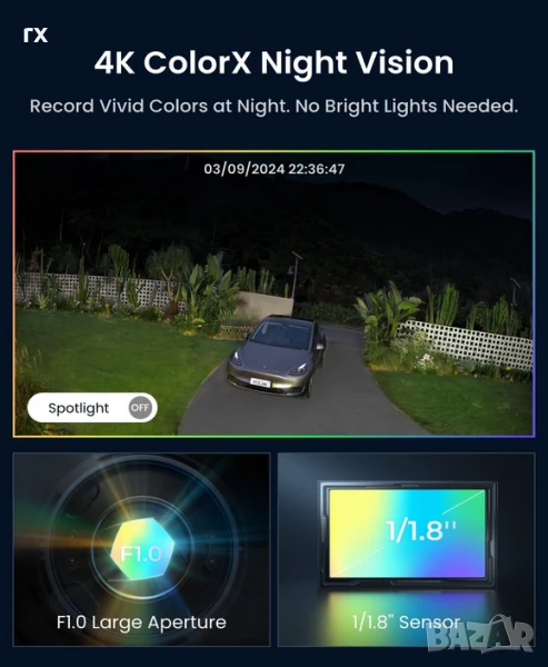 ColorX Нощно виждане] С бленда F1.0 и сензор 1/1.8'', тази камера улавя