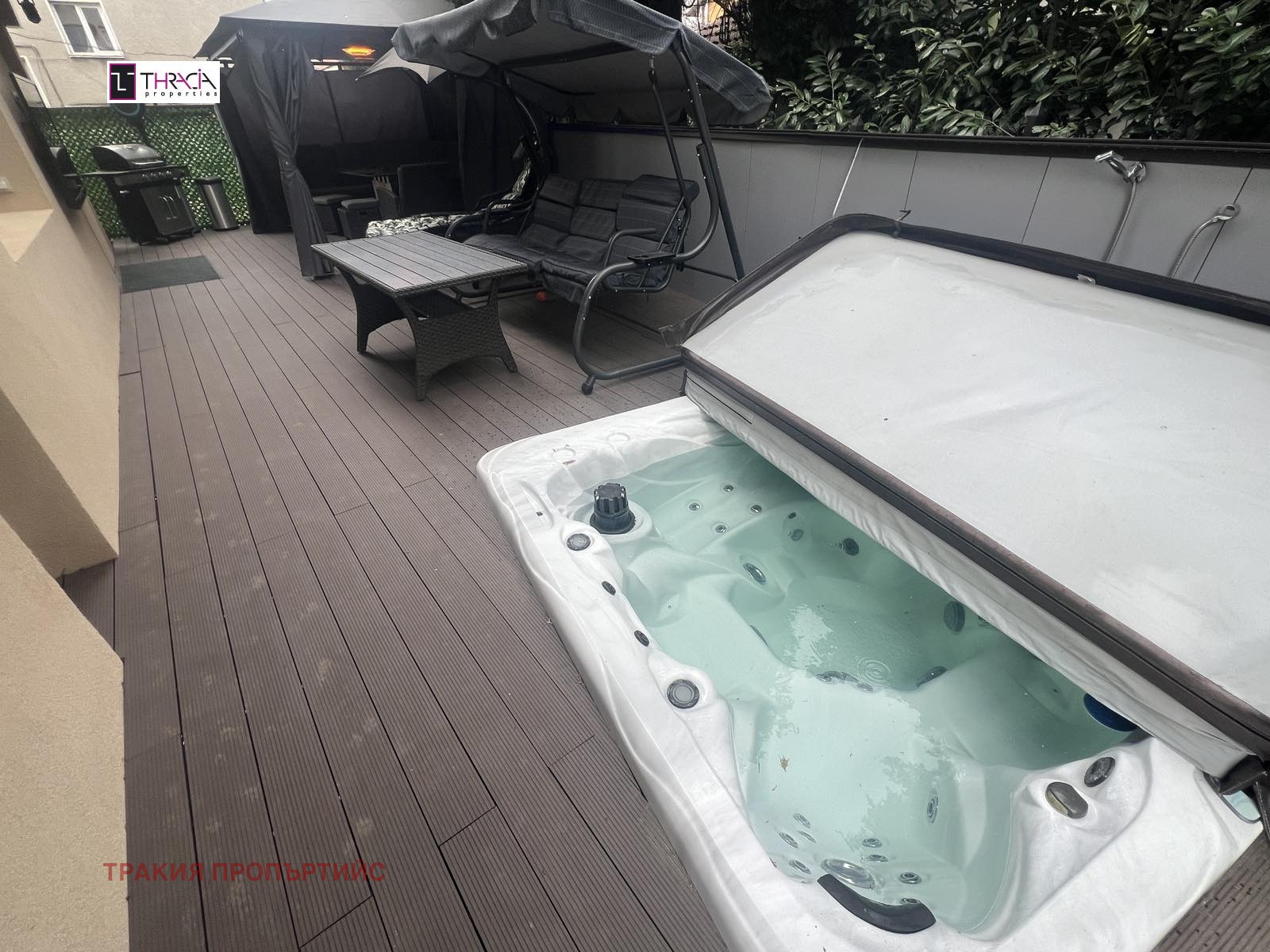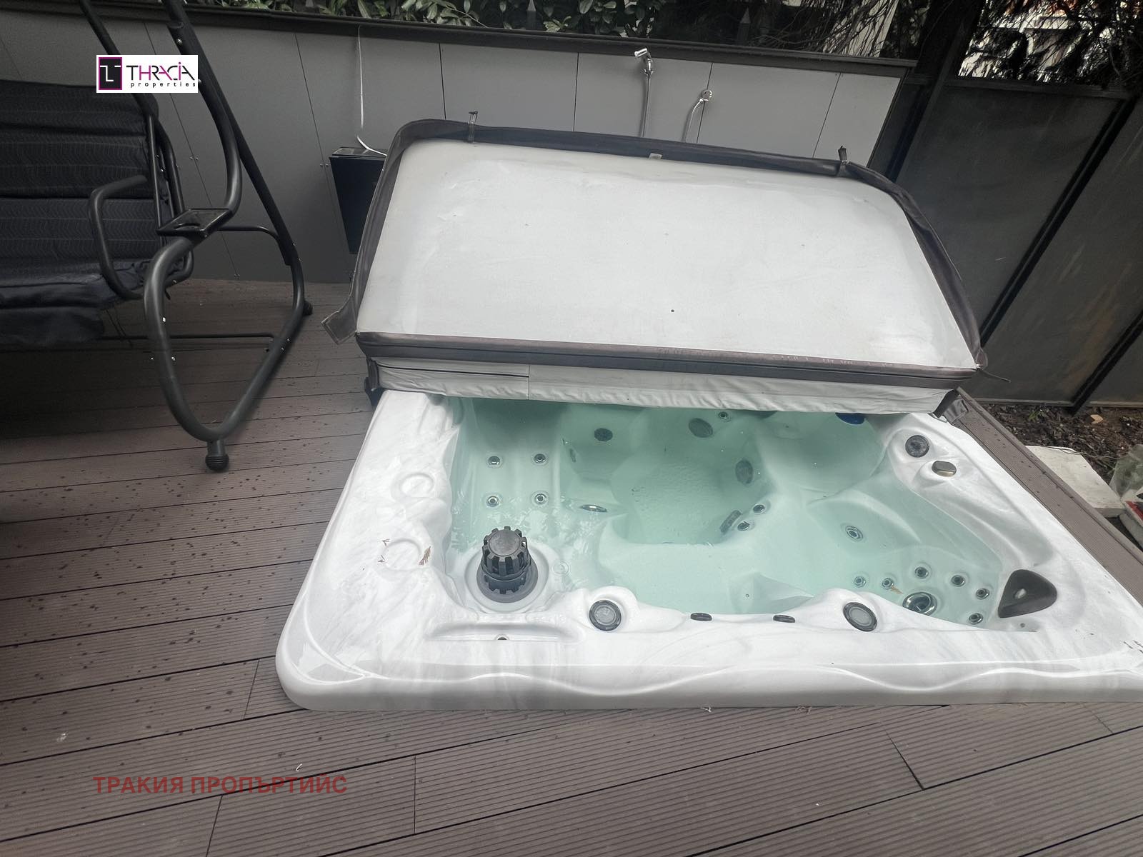 - Джакузи в двора с вграден хладилник