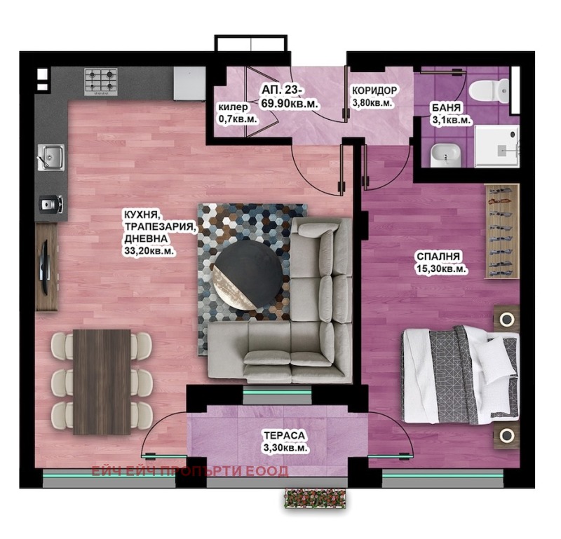 ✨ Просторен двустаен апартамент с площ от 79.6 кв.м на 6-ти етаж от 8! Този апартамент е перфектен за тези, които търсят светло, функционално и модерно жилище. Намира се в сграда с високо качество на строителството, предлагайки уют и комфорт в динамичното градско ежедневие.