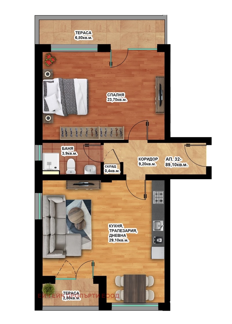 ✨ Просторен двустаен апартамент с площ от 101.5 кв.м на 7-ми етаж от 8! Този апартамент е перфектен за тези, които търсят пространство, светлина и лукс в съвременна сграда. С две големи тераси, той предлага не само комфорт, но и уникални възможности за отдих на открито.