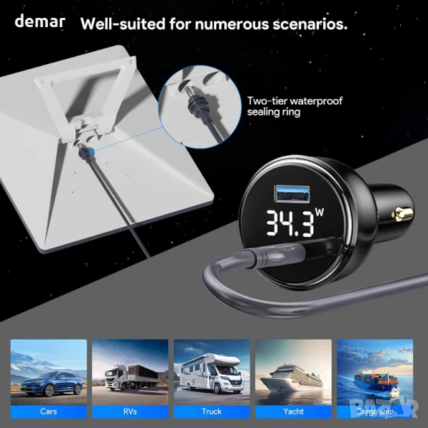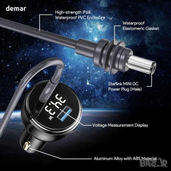 Проектирано за надеждно захранване в движение, това здраво зарядно устройство се свързва директно към автомобилния адаптер Starlink Mini и е съвместимо с контакти 12V–24V в превозни средства като автомобили, кемпери и камиони. Разполага с бързо зареждане с два порта (67W USB-C, 30W USB-A) с издръжливо окабеляване 20AWG, плюс вграден LED волтметър за наблюдение на напрежението в реално време. Конфигурацията „plug-and-play“ го прави лесен за употреба, а водоустойчивата конструкция IP68 гарантира надеждна работа дори при тежки условия.