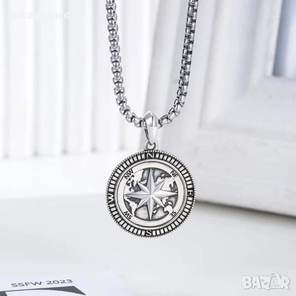 DOTBJ Колие с висулка и верижка с карта на света, компас за мъже и жени, бижута за дипломиране от стерлингово сребро 925 с верижка от неръждаема стомана, 50,8 см + 5 см