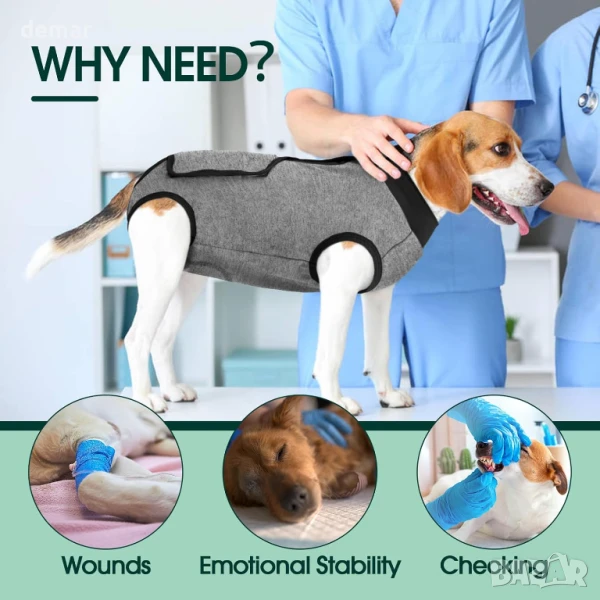 Изработен от мек, дишащ найлон и еластан, този лек и разтеглив костюм за възстановяване на кучета поддържа домашните любимци хладни и удобни след операция. Той е от едно парче със здрава велкро задна част и отваряем заден панел за лесно обличане и почивки за тоалетна, особено за мъжки кучета. Проектиран да предпазва шевовете и раните, той предотвратява близането и надраскването, за да подпомогне по-бързото заздравяване. Идеален като препоръчана от ветеринарни лекари алтернатива на конусовидни костюми, той позволява естествено движение, хранене и игра без дискомфорт. Може да се пере в пералня и е подходящ за различни нужди от възстановяване, като кастрация, стерилизация или обща грижа за рани.