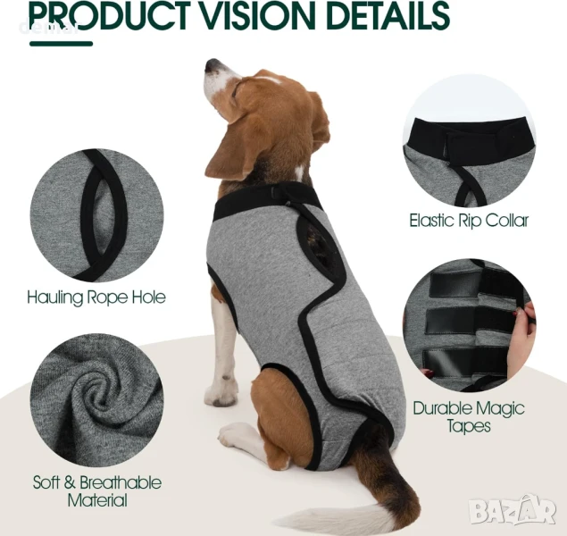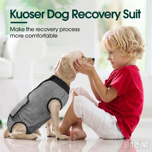 Костюм за възстановяване от хирургия за кучета Kuoser, женски и мъжки, сив M