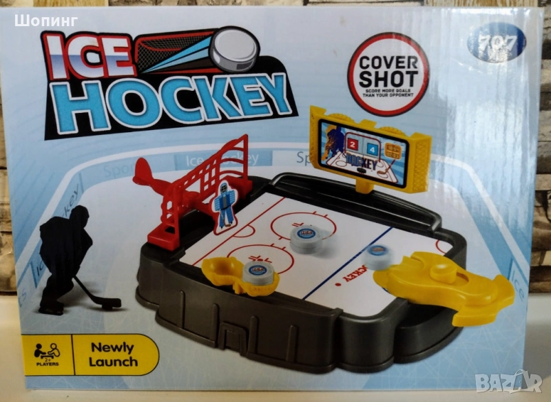 Детска игра Kingso - Хокей - Ако вашите деца са фенове на хокея, зарадвайте ги с тази страхотна игра от Kingso. Тя е подходяща за двама играча. Комплектът е съставен от игрална маса, във вид на хокейно игрище, на което е разположен един играч на врата. Има добавено табло за резултат, както и няколко шайби. Те се приближават до специално приспособление на другия край на игралната маса и вторият играч изстрелва шайбата към вратаря. Целта разбира се е шайбата да влезе във вратата. Децата сами преценяват кой да пази вратата и кой да стреля по нея. Комплектът е изработен от висококачествена пластмаса. Размер 25 x 5 x 19 см - Цена: 19 лв.