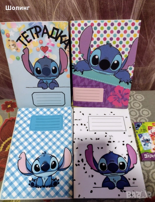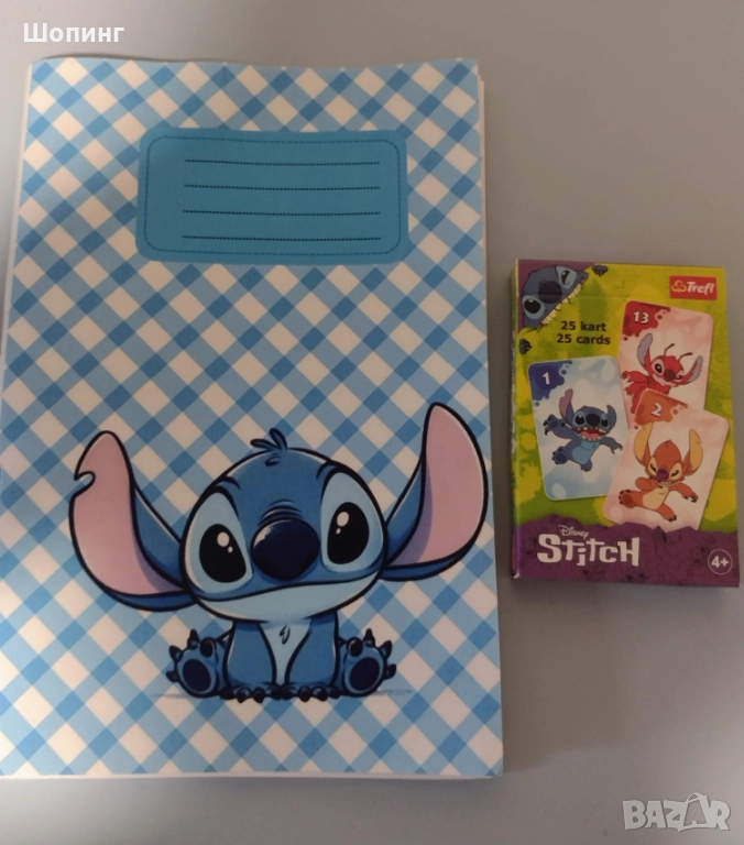 Настолна игра Лило и Стич карти UNO + тетрадки - Чисто нов комплект, който включва Настолна игра Old Maid: Stitch и 4 броя тетрадки Stitch, формат А5, 40 листа, широки редове.