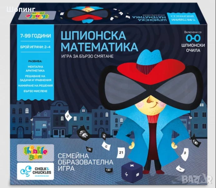 Шпионска математика с жетони и специални 3D очила! - Можеш ли да свършиш мисията си преди приятелите ти? Сложи очилата, потърси верния отговор в жетоните и бъди победител, като смяташ задачите. - Цена: 29 лв.