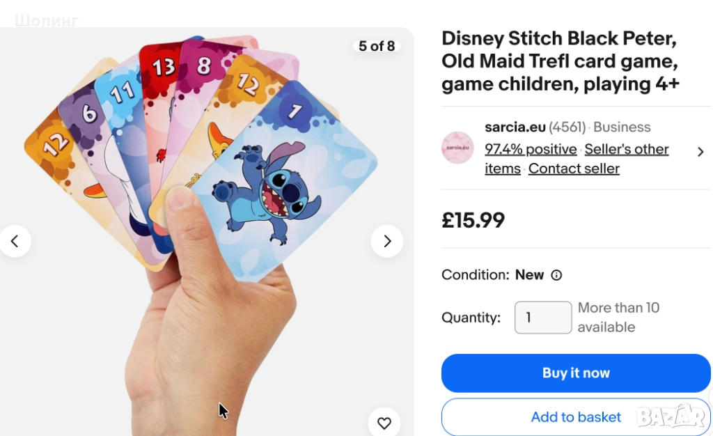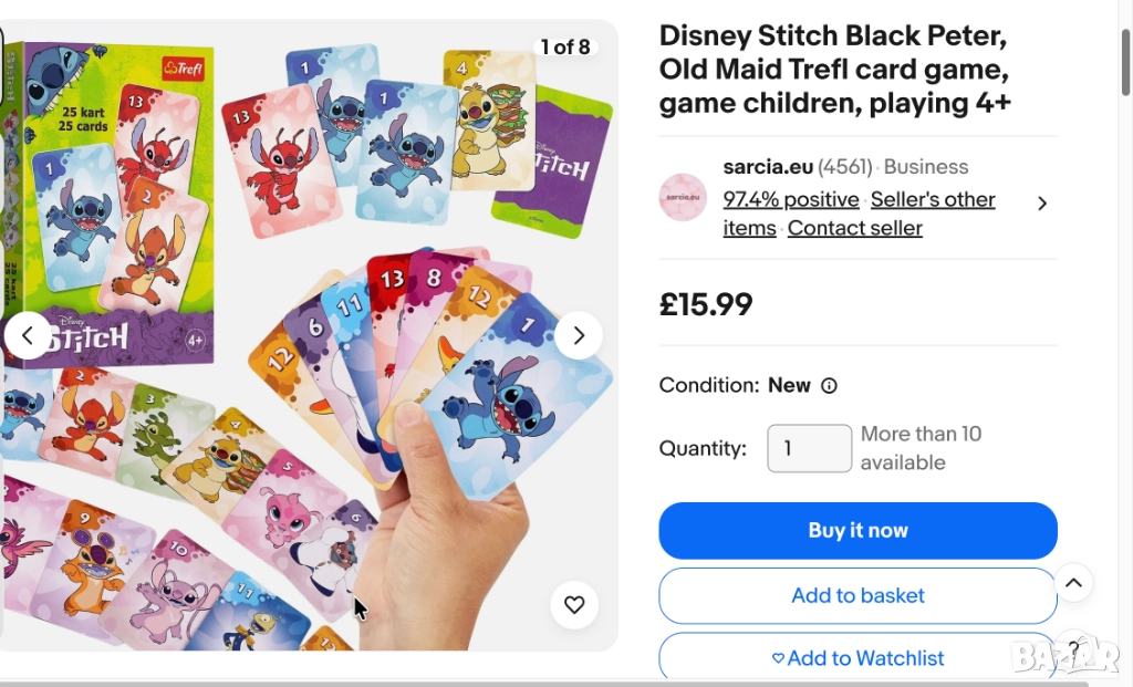 Насладете се на часове забавление с тази игра на карти от Trefl. Популярната игра "Черен Петър" сега е с още по-вълнуващ и интересен за децата облик, вдъхновен от популярния анимационен герой Стич. Със своите лесни правила и пъстри илюстрации, тя бързо се превръща в любимо забавление за малки и големи. Играта е подходяща за семейни вечери или за игра с приятели, като развива паметта, концентрацията и логическото мислене на децата. Размер 10 см. Съдържа 25 карти с илюстрации на герои от филма Stitch; Ярък и атрактивен дизайн, който ангажира вниманието на децата; Лесни и достъпни правила, подходящи дори за най-малките играчи; Подходяща за индивидуална игра или в малки групи; Компактна опаковка, удобна за пътуване или съхранение. - цена 25 лв.