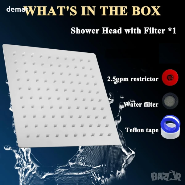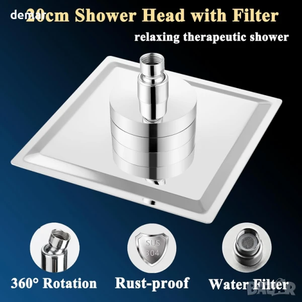 Филтриран душ, 20 см луксозен душ тип „Дъжд“, омекотява твърдата вода, хром