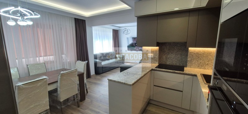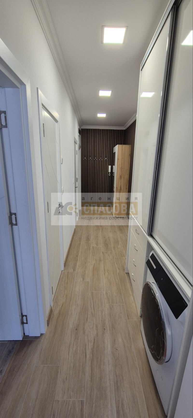 Агенция Спасова отдава под наем чисто нов апартамент, първи наематели. Имотът е основно ремонтиран, ел, вик, подови настилки , врати, нови електроуреди, абсолютно всичко. Състои се от дневен тракт с кухненска част , тераса, две спални , втора тераса, баня с тоалет , отделно само тоалет, антре - коридор. Всички електроуреди в имота са чисто нови бош и самсунг. Три чисто нови климатика Фуджитцу. 65 инча телевизор. В санитарните помещения всичко е от Грое. Съдомиялна, пералня, сушилня. Дългосрочно . Депозит. Договаряне. Съдействие от собственика за синя зона. Топ локация, но на тиха и спокойна улица. Входът е със сменена дограма, боядисан , с контрол на достъпа. Без домашни любимци. Агенция Спасова работи по всички свои оферти както с директни клиенти, така и с колеги.Директен контакт с брокер 00359 888 667 551 Мирослав Спасов. За повече и по-подробна информация посетете www.spasovaproperties.com Оферта 0074