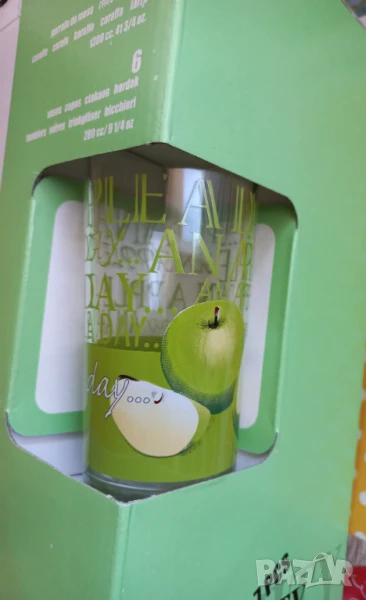 Продавам този прекрасен комплект на Pasabahce. Кана и 6 бр.високи чаши, стъкло, с мотиви на зелена ябълка. Комплектът е Нов! Само лично предаване за София!
