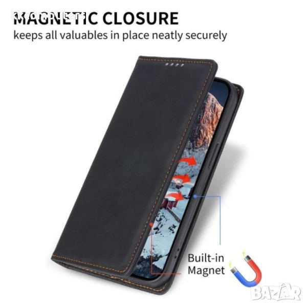 Приляга идеално към телефона. Защитава гърба, дисплея и в същото време има приятен и класически дизайн - тип книга. Не увеличава размера на Вашия Realme 14x / Realme C75 съществено.