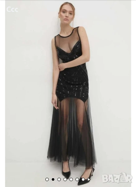 черна дълга рокля с пайети и тюл, много секси модел, размер М-Л, 40 лв.