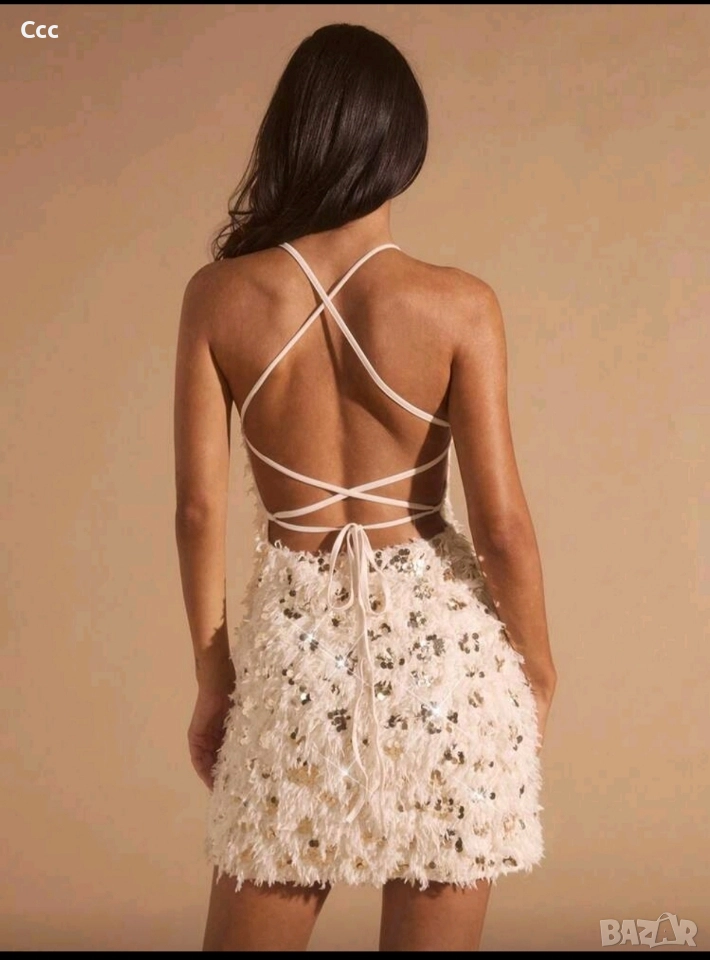 бежова рокля с пайети, С размер, 25 лв