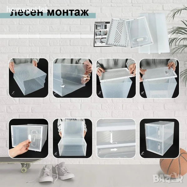Прозрачният дизайн на пластмасовия органайзер за обувки прави всичко видимо, без да се налага да отваряте кутията.