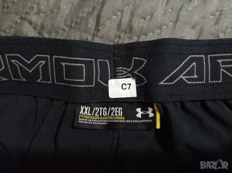 2 XL . Шорти на Under armour с ширина при отпуснато състояние 45 см. и максимално разтегнато състояние 60 см. Дължина 50 см. Тънка , приятна и еластична материя . Два джоба .Цената не се коментира ! Разгледайте и другите ни предложения .