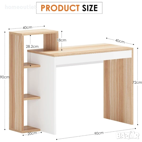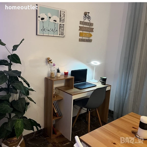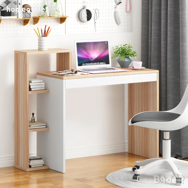 Модерната цветова комбинация от дърво и бяло придава на бюрото елегантен и съвременен вид.